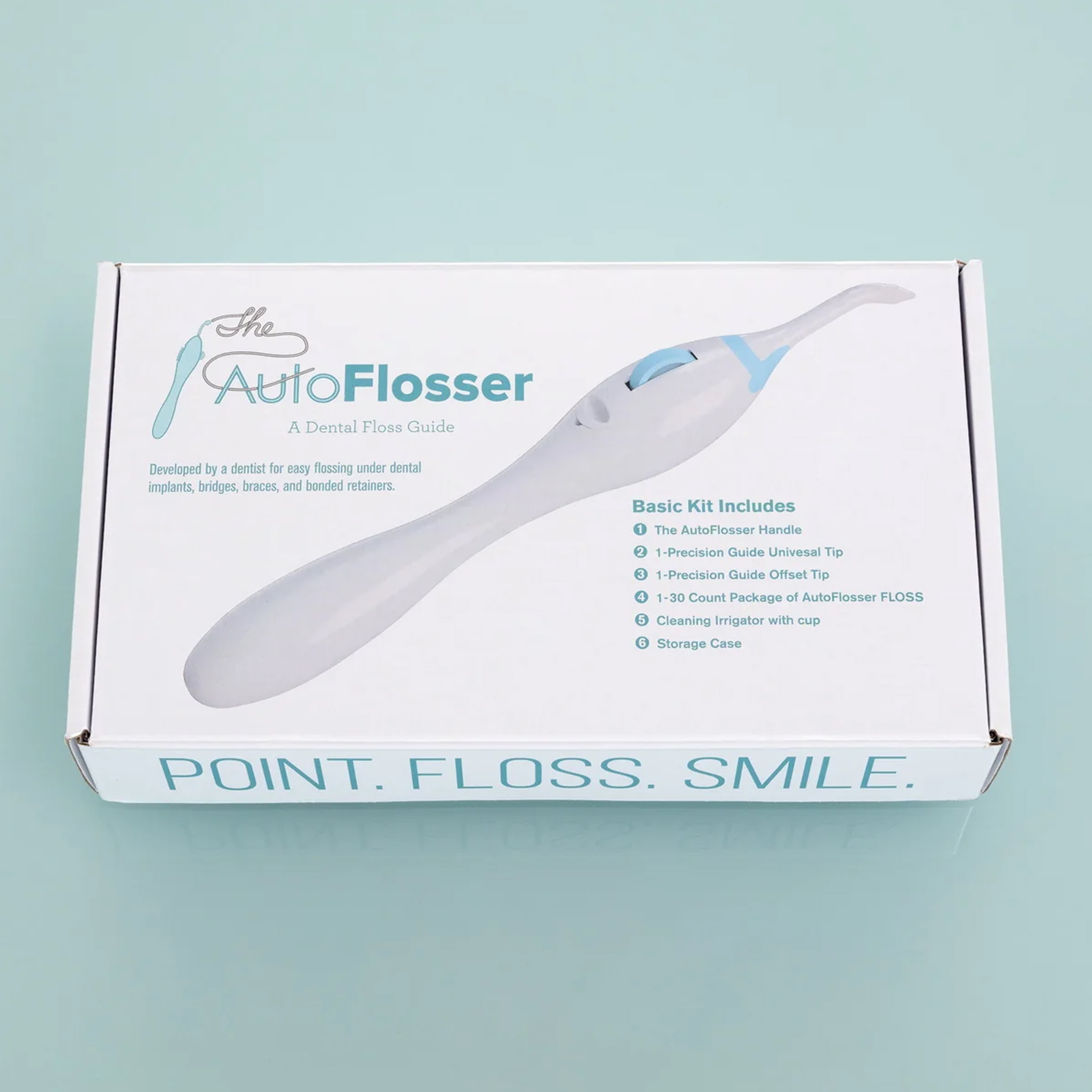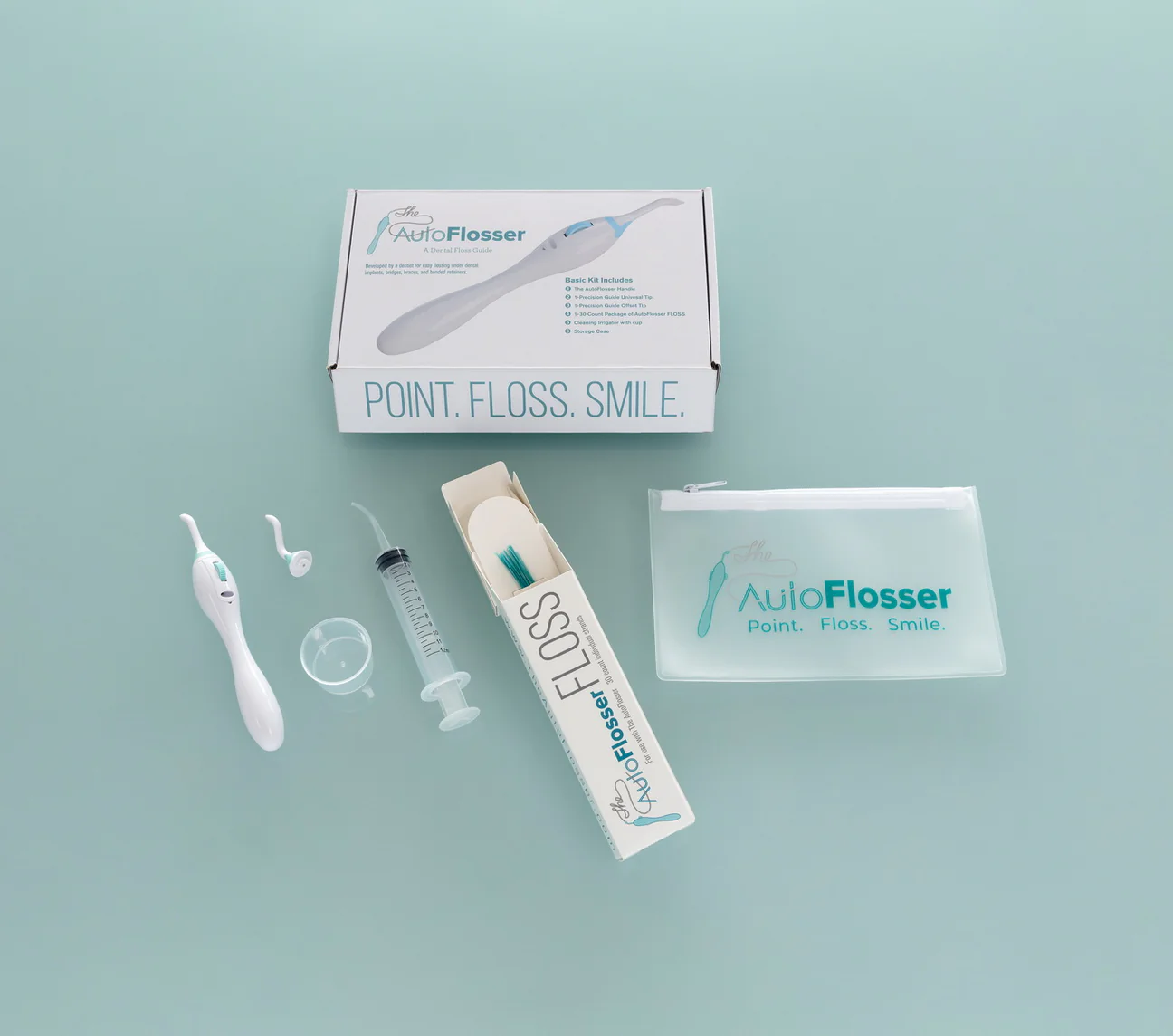 Get a handle on FLOSSing with The Original AutoFlosser Starter Kit – the patented, dentist-designed FLOSSing handle that makes it easy to clean under bridges, around implants, between braces, and behind bonded retainers. Developed by a board-certified periodontist and prosthodontist, The Original AutoFlosser uses a precision drive wheel to guide FLOSS under dental work quickly and comfortably. It’s ideal for anyone who struggles with traditional floss threaders or picks. Free shipping on every order.
